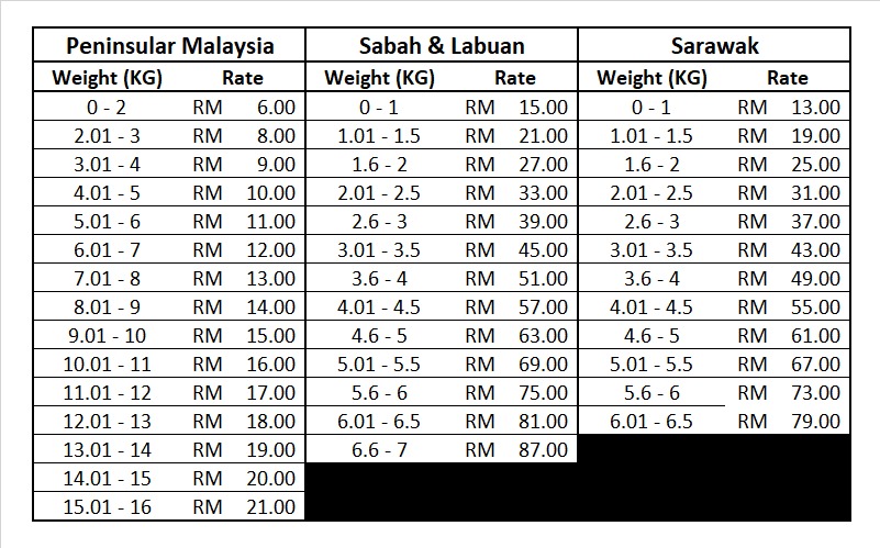 Delivery fee will be charged according to the weight and location, you can refer the tables below:-