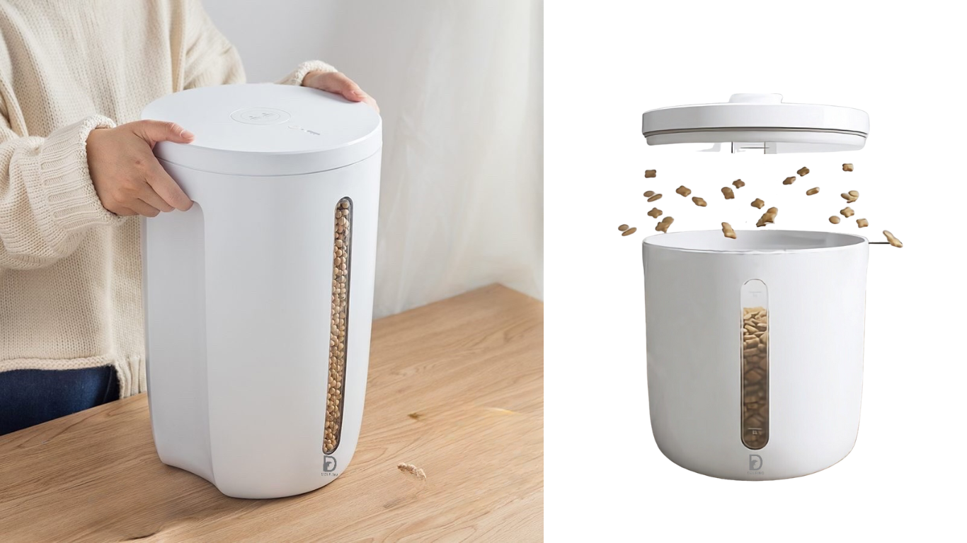 Picture this: You open a bag of kibble. You scoop out the perfect portion. You seal it up… kind of. Days later, it’s already stale. Enter our hero—the Delfino Kanpeki Smart Air Tight Vacuum Storage Container. This bad boy uses vacuum technology to suck out all the air, keeping Fido’s feast fresher for longer.