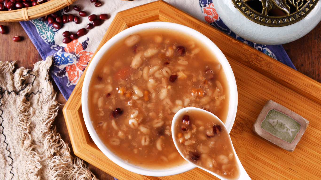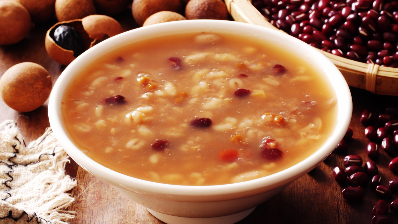 - Ingredients: Glutinous rice, red beans, green beans, peanuts, red dates, lotus seeds, goji berries, rock sugar, water