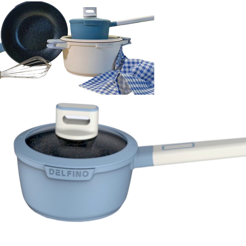 Delfino Zense Sauce Pan/ Milk Pot Die-casting Non Stick 3 Layers Granite Coating With Silicone Lid & Handle 1.3L (16cm)