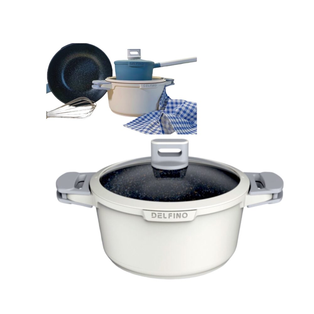 Delfino Zense Dutch Oven Die Casting Non Stick 3 Layers Granite Coating Pot Casserole Cookware With Silicone Lid 8L (32cm)