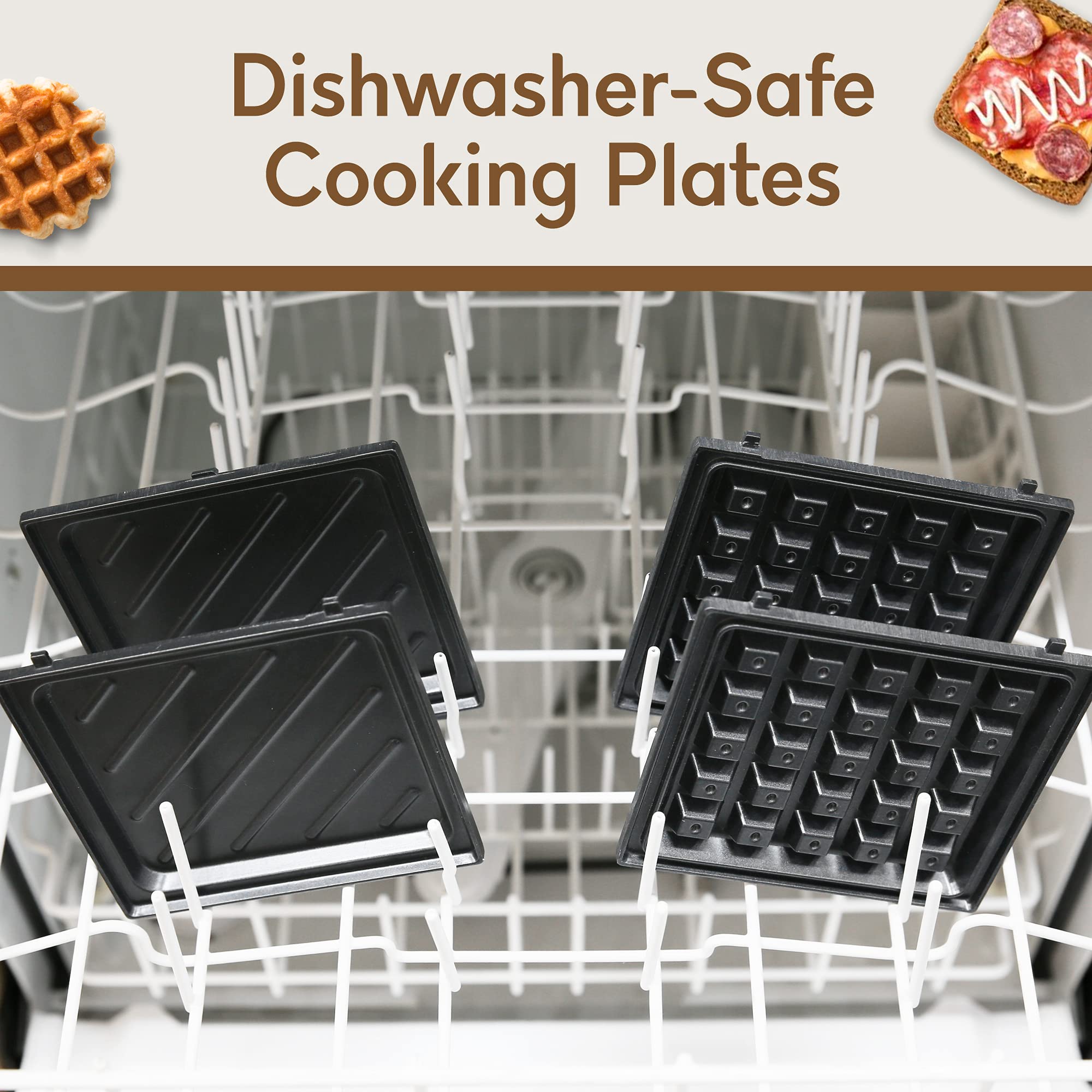 Simply plug it in and go; Dual non-stick surfaces provide an even cook for consistent results and delicious waffles every time, Nonstick surfaces make cleanup a snap. Buckle design, easy to disassemble, with 2-stage buckle adjustment, thickness can be adjusted.