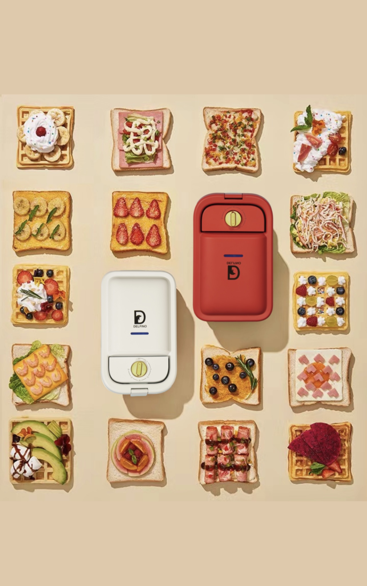 Delfino Pankeki comes with 12pcs of detachable plates for sandwich, waffle, donuts, egg balls, panini, and grill plate for toastie, egg, meatball, steak and bacon. Saves your counter space and meets with different delicious ingredients.