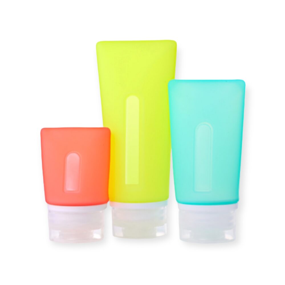 Silicone Neon Colorful Transparent Series Reusable Leakproof Travel Bottles Set of 3pcs (37ml+60ml+89ml)