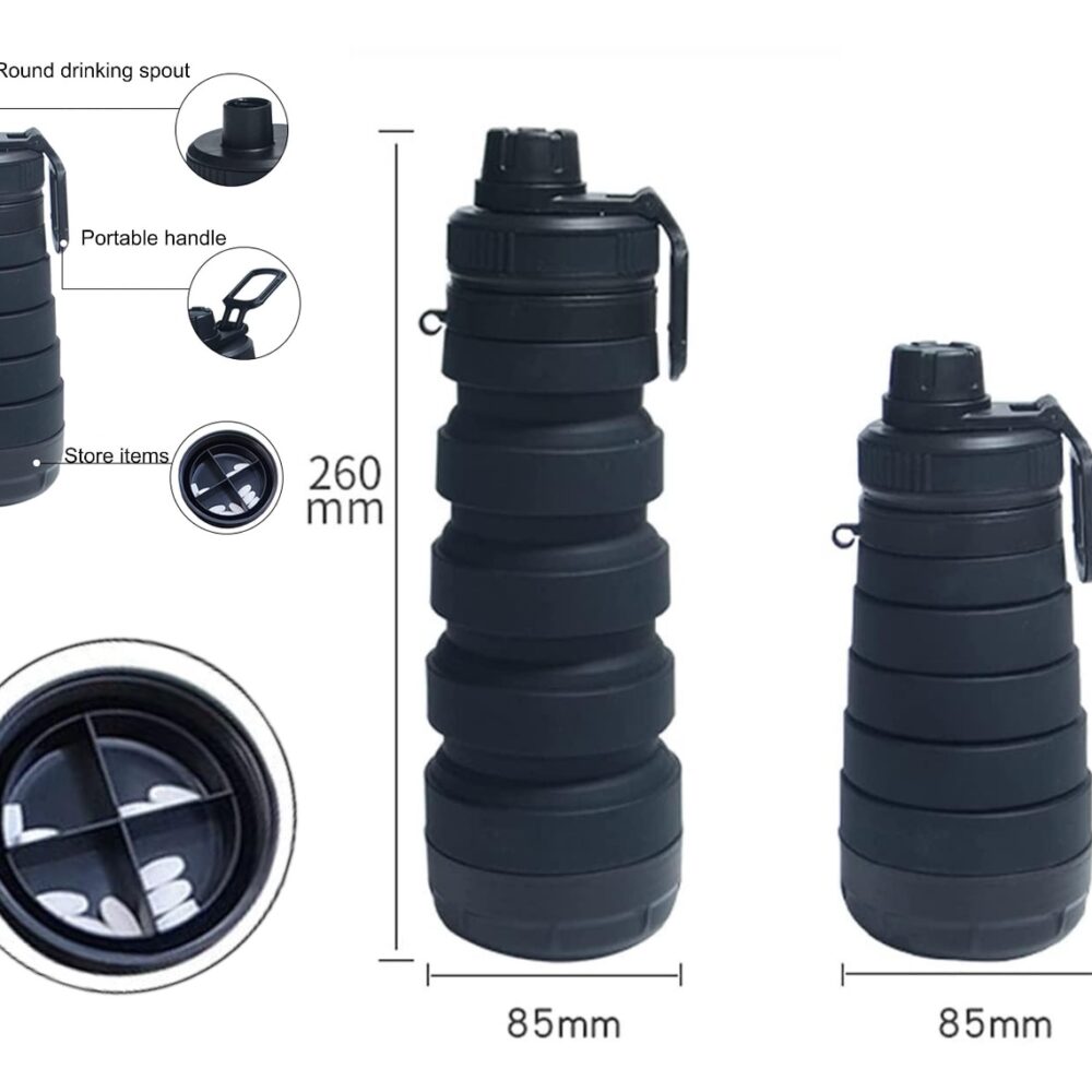 Delfino Silicone Collapsible Water Bottle With Pill/Supplement Storage Organiser 750ml
