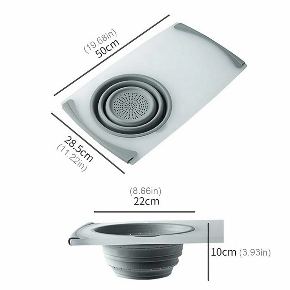 Multifunctional Silicone 2 in 1 Over The Sink Cutting Board with Strainer (Grey)